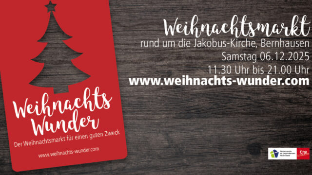 Auch dieses Jahr findet wieder “WeihnachtsWunder” in Filderstadt rund um die Jakobuskirche statt. Wir singen wieder ein paar Lieder zum Advent und zur Einstimmung in die Vorweihnachtszeit. Herzliche Einladung zum Zuhören und Mitsingen. Los geht`s um 18:30 Uhr in der Kirche.
